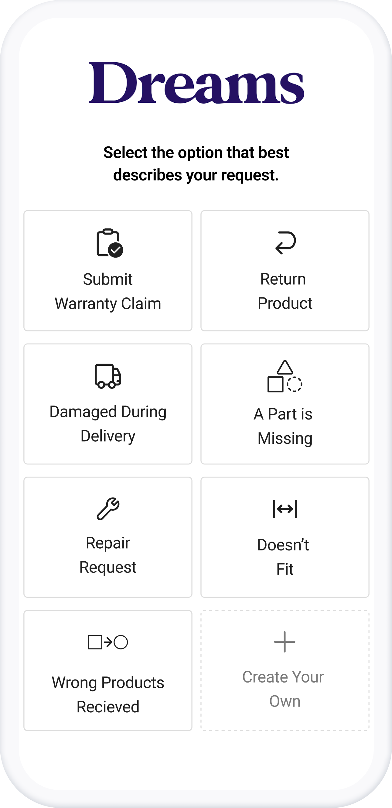 Returns, claims, repairs - whatever your business need, inside one portal. Route tickets to specific outcomes and stakeholders.