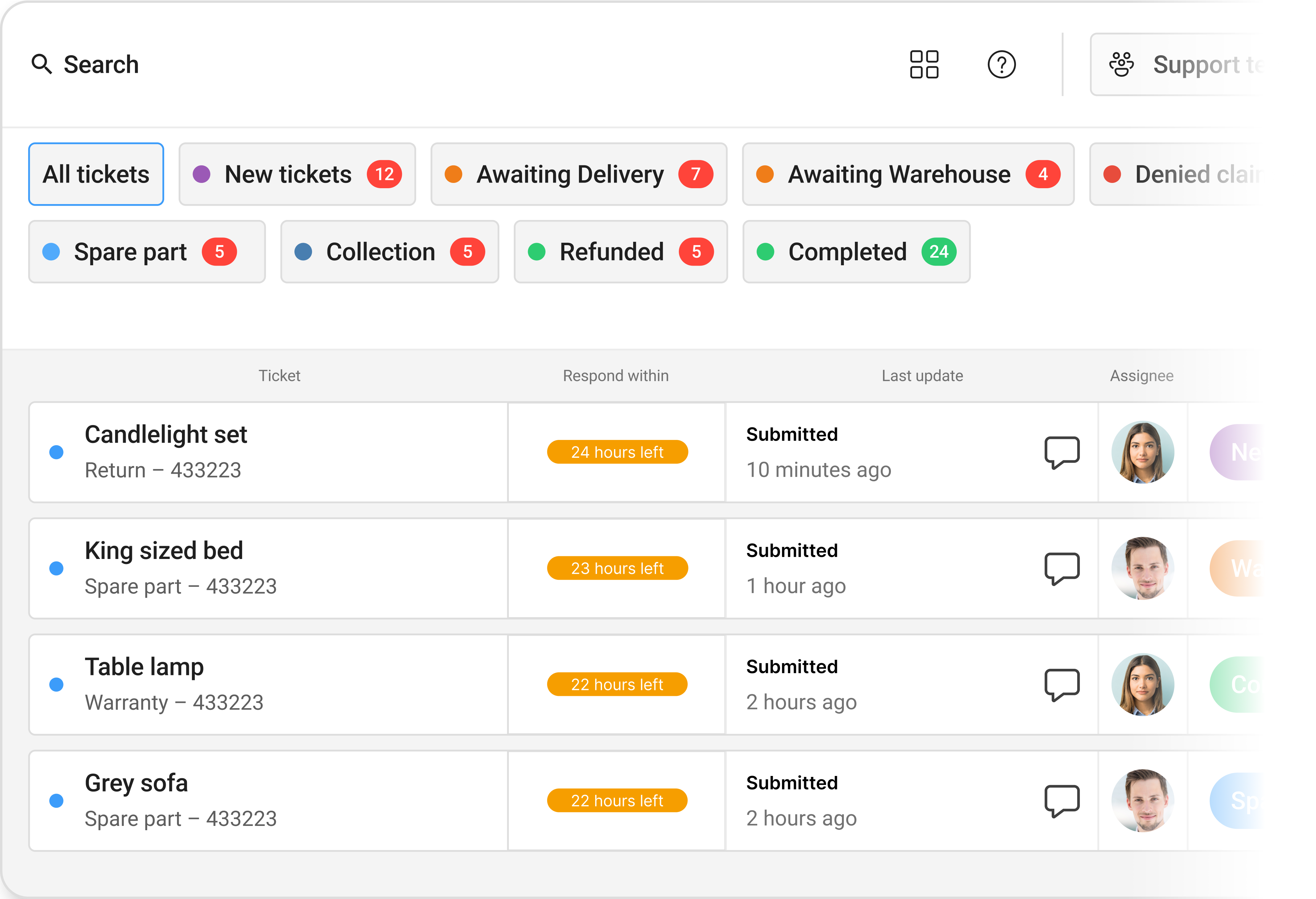 Handle returns, warranty claims, and repair requests from any type of sales channel and create one unified workflow.