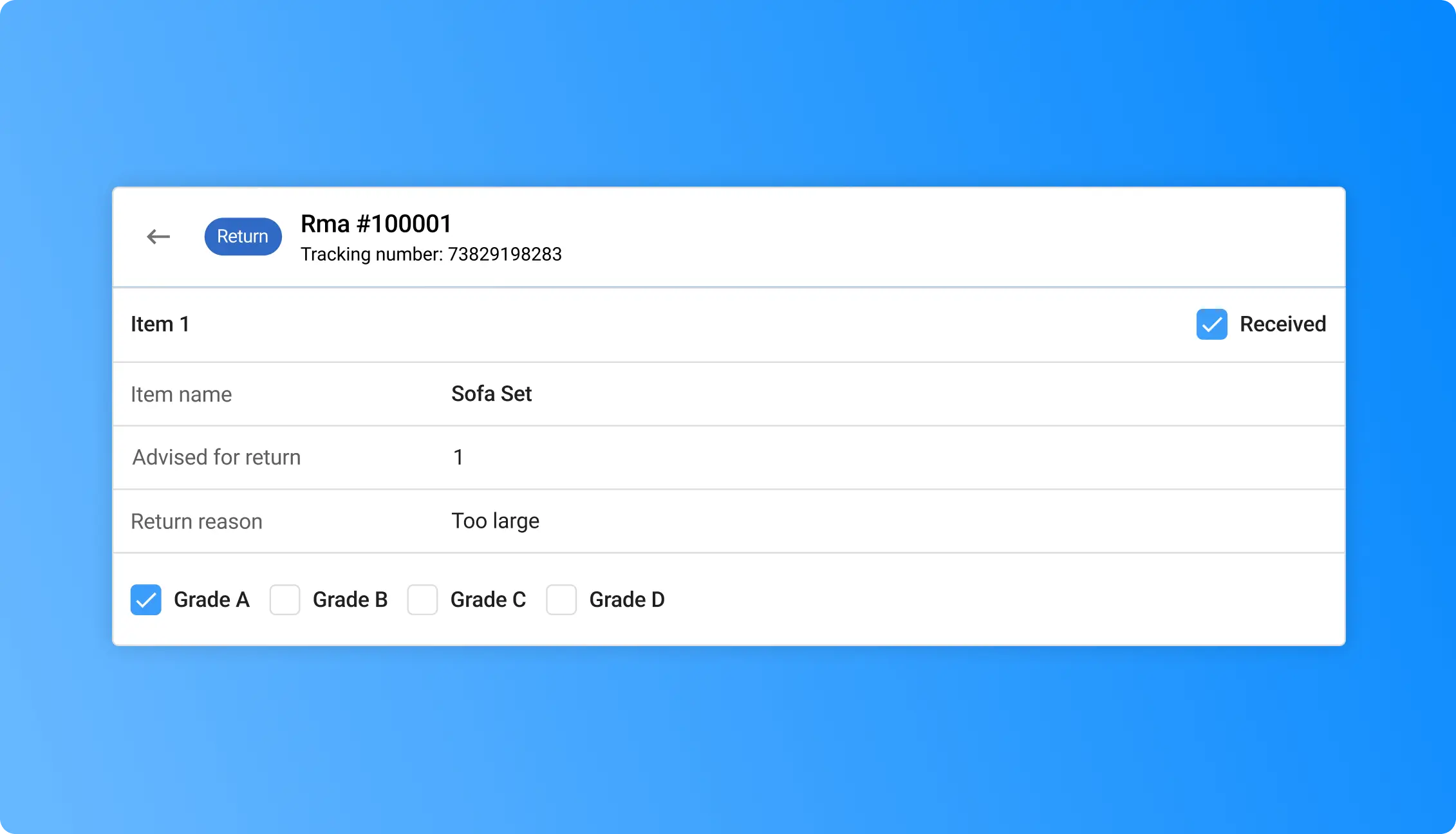 Once the warehouse team has graded the product, actions can be automatically triggered based on that grade. This helps speed up the returns process and ensures that things are handled the right way, without the need for manual intervention.